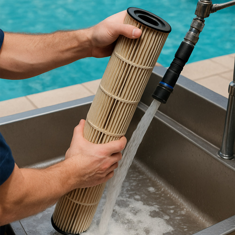 Regular cleaning of cartridge filters is essential to ensure the efficiency of your pool’s filtration system and keep the water clean. At LM Rising Pools, we perform professional cartridge washing, removing debris and extending the lifespan of your filters without compromising performance.